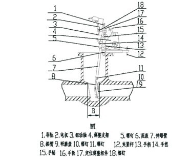 3.固定底座及调整支架固定底座的装夹方式为三点紧固,紧固底座上的三点上定要平稳地固定在阀体的法兰上,装夹方式一般分为以