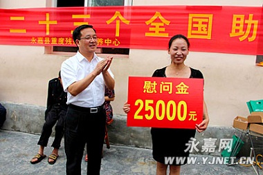 今年的 5月19是第23个全国助残日,永嘉县委副书记县长姜景峰率县残联理事长郑文杰、县委农办领导、和浙江优机机械科技有限公司总经理李珍武等专程到县重度残疾人托养中心、东城街道峙口村、长源村慰问。